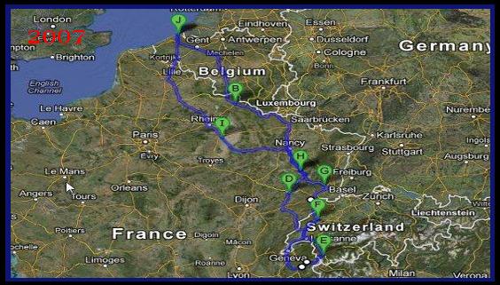 2007 The five add one more to make six who depart again from Rosyth. This year they head to the Voges Mountains and the Grand Ballon. The weather being very favourable, they head south to Switzerland and make a swift visit to Chamonix, Annecy and Geneva. Accomodation was :- Charleville Mezieres, Epinal, Vesoul, Martigny, Neuchatel, Thann, Epinal and Chalons en Champagne. (James. Dave S, Dave W, Craig, Karen and Jimmy)